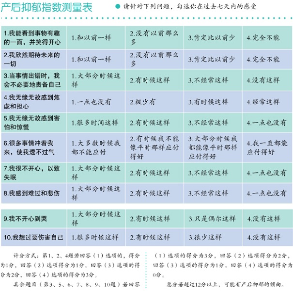 产后坐月子自测抑郁指数